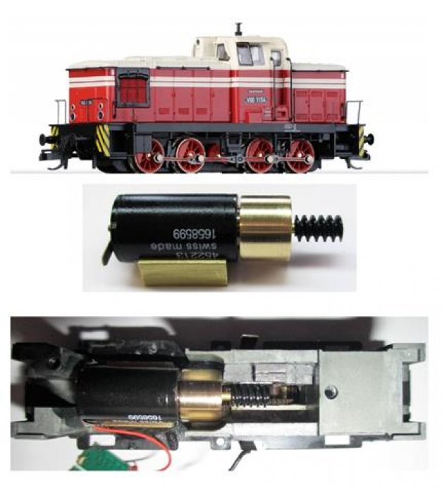 Das TT-Modell der Rangierdiesellok V 60 der DR von Tillig wird mit diesem Umrüstsatz von SB Modellbau auf Glockenankermotor mit Schwungmasse umgebaut.