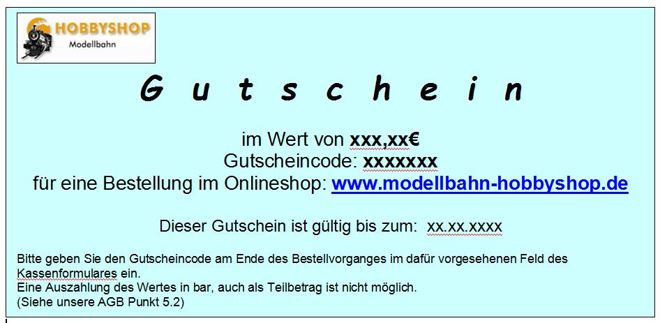 Es gibt einen Anlass und Ihre Familienmitglieder, Freund und Bekannten möchten Ihnen für Ihr Hobby, die Modelleisenbahn etwas schenken, wissen aber nicht, was Sie benötigen bzw. was das Richtige für Sie ist. Dann ist ein Gutschein das Geschenk der Wahl.